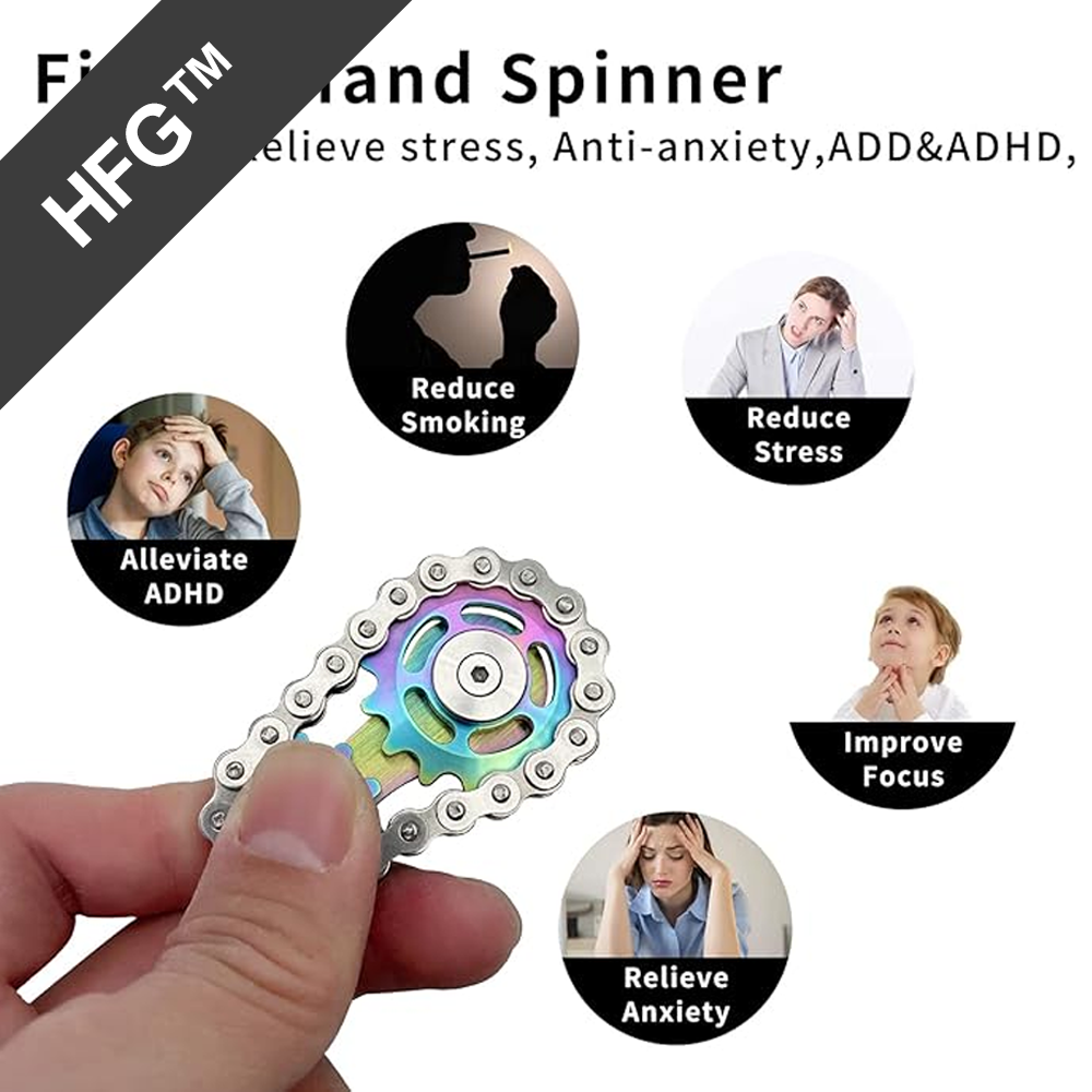This metal chain gear fidget spinner is designed to deliver smooth, satisfying spins while helping reduce stress, anxiety, and restless habits. Built with precision metal components and dual stainless steel bearings, it offers quiet operation and long-lasting durability for everyday carry use. Its compact size fits comfortably in the hand or pocket, making it ideal for work, travel, or downtime. Suitable for teens, adults, and seniors, this spinner encourages hand and finger movement while improving focus during moments of boredom, tension, or distraction.